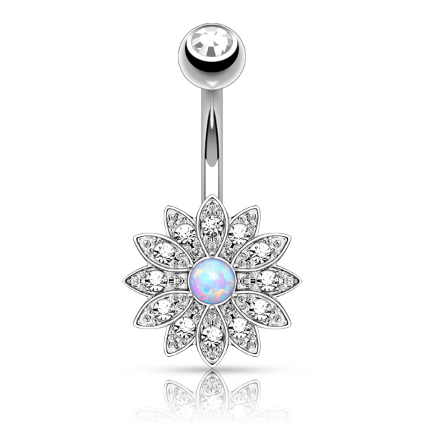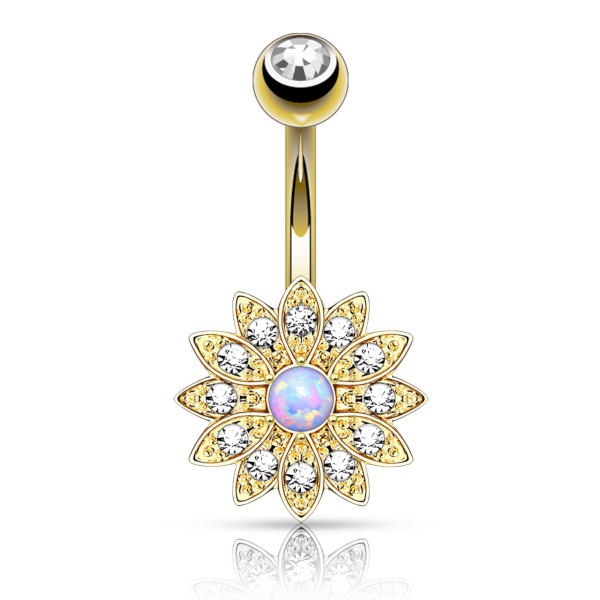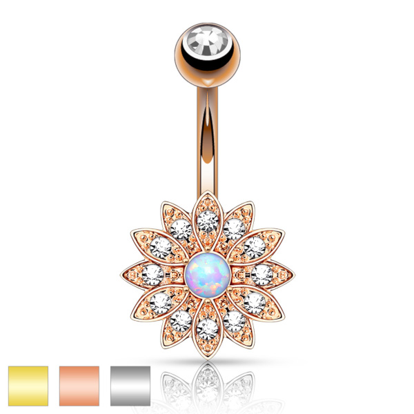 Банан из хирургической стали 316L. Цветок - из родированной латуни, украшен стразами и лабораторным опалом. Представлены вариации с золотым покрытием.