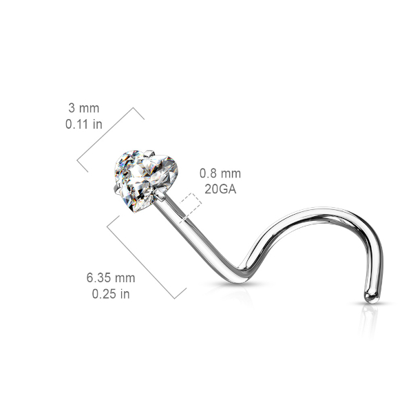 Нострил из хирургической стали 316L с кристаллом в форме сердца.