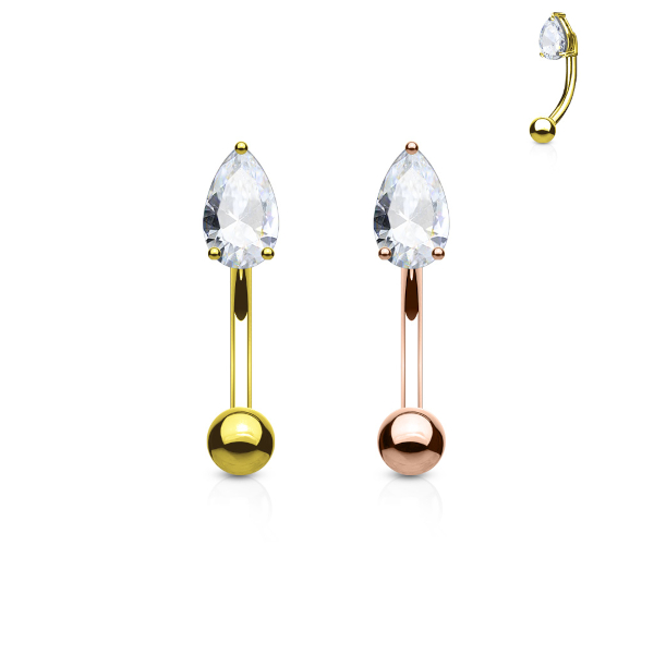 Микробанан из хирургической стали 316L с золотым покрытием. Украшен стразом-каплей в латунных лапках. Размер страза - 3х5мм.