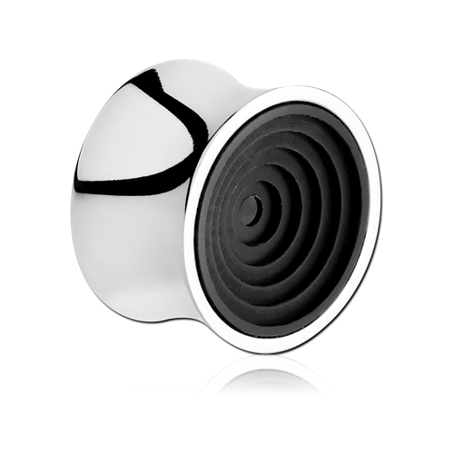 Плаги из хирургической стали 316L. Оформлены черными концентрическими кругами в перспективе.