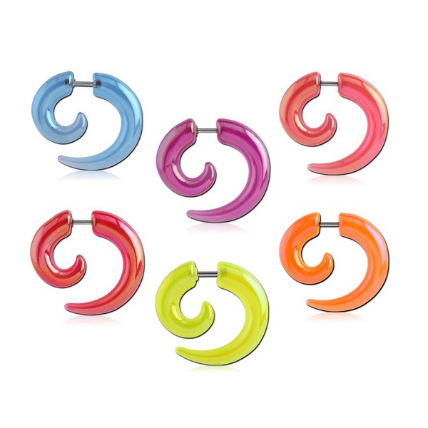 Обманки-спирали из цветного акрила с перламутровым отливом.