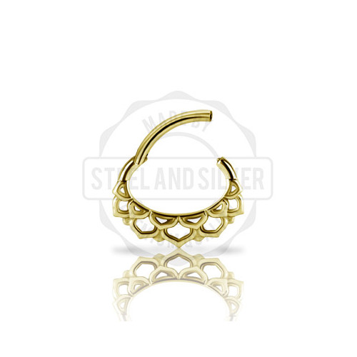 Кликер с изящным узором из хирургической стали 316L дополнен 24х каратным PVD покрытием.
