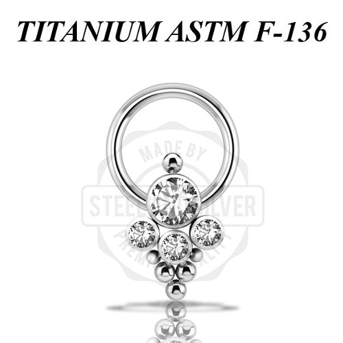 Кольцо из имплантационного титана 6Al-4V-Eli ASTM: F-136 украшен кластером из кристаллов Swarovski.