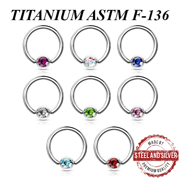 Кольцо из имплантационного титана 6Al-4V-Eli ASTM F-136. Украшено премиальным кристаллом.