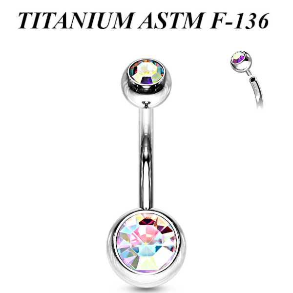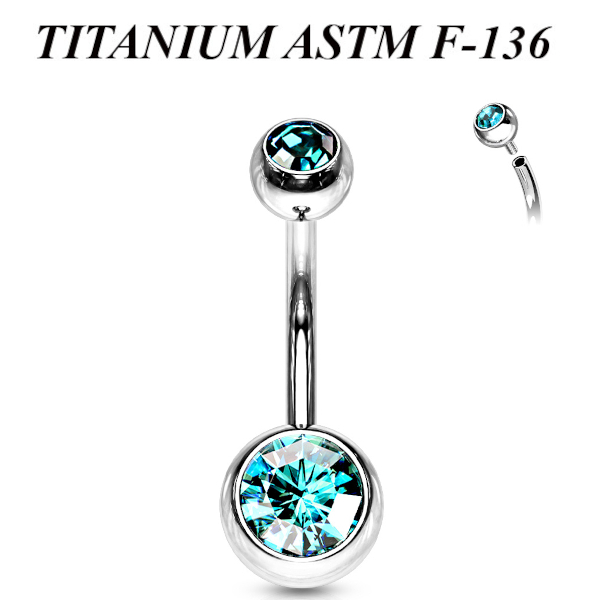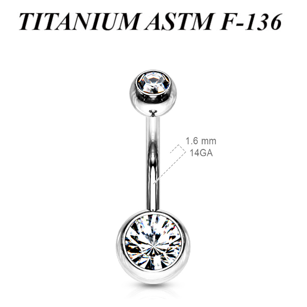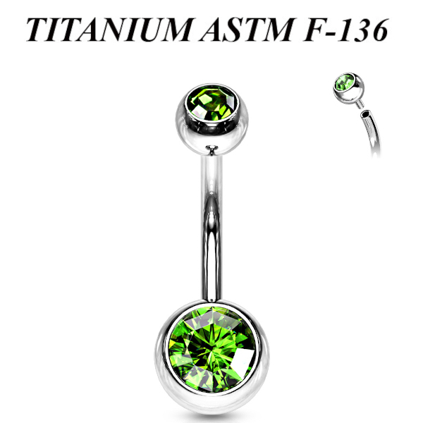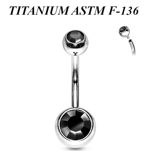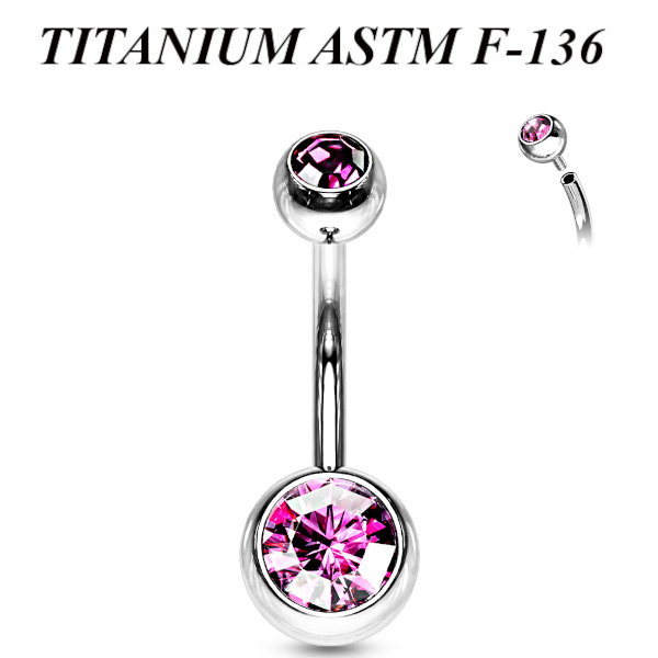 Банан из имплантационного титана 6Al-4V-Eli ASTM: F-136 с внутренней резьбой. Украшен яркими фианитами. Диаметр нижнего шарика - 8мм, верхнего - 5мм.