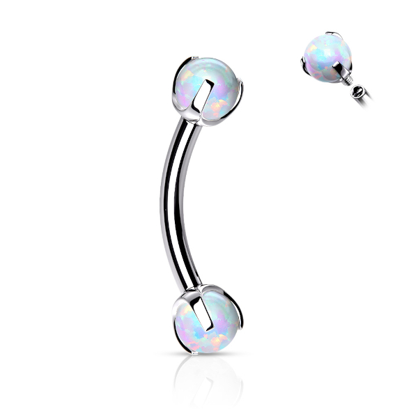 Микробанан из хирургической стали 316L с лабораторными опалами. Внутренняя резьба.
