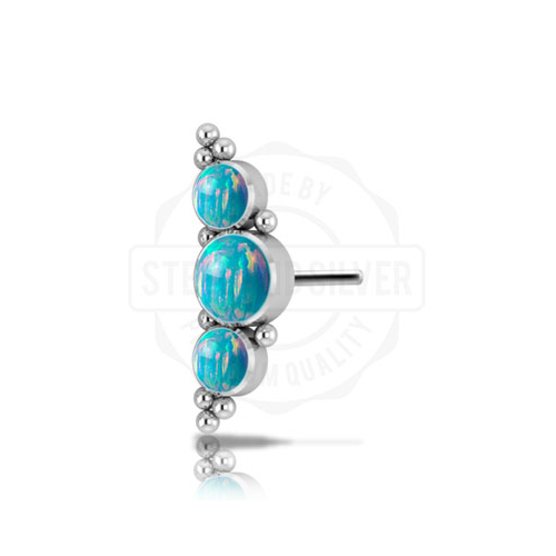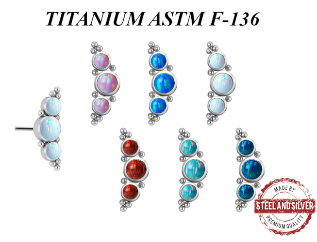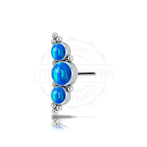 Вставка из имплантационного титана 6Al-4V-Eli ASTM: F-136 для безрезьбового украшения. Украшена лабораторными опалами диаметром 3 и 4мм.