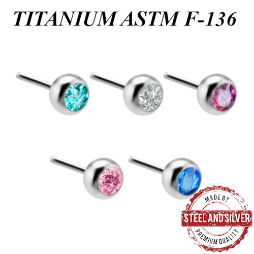 Вставка из имплантационного титана 6Al-4V-Eli ASTM: F-136 для безрезьбовых украшений. Украшена Premium Zirconia.
