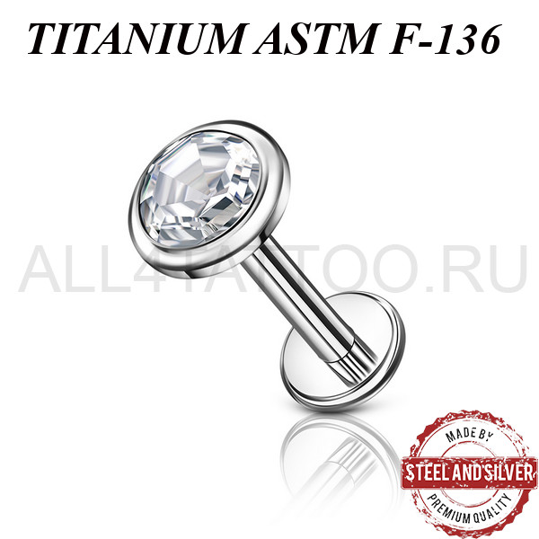 Лабрет из имплантационного титана 6Al-4V-Eli ASTM: F-136 с накруткой украшенной премиальным кристаллом. Внутренняя резьба.