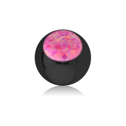 Шарик из хирургической стали 316L с чёрным PVD покрытием украшен лабораторным опалом. Подходит для украшений с внешней резьбой.
