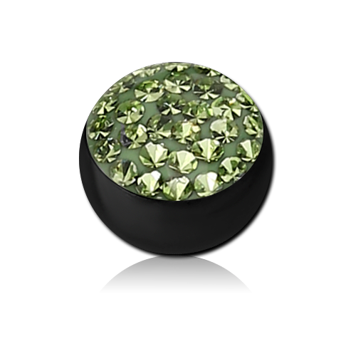 Шарик из хирургической стали 316L с чёрным PVD покрытием украшен стразами под прозрачным акрилом. Подходит для украшений толщиной 1.6мм с внешней резьбой.