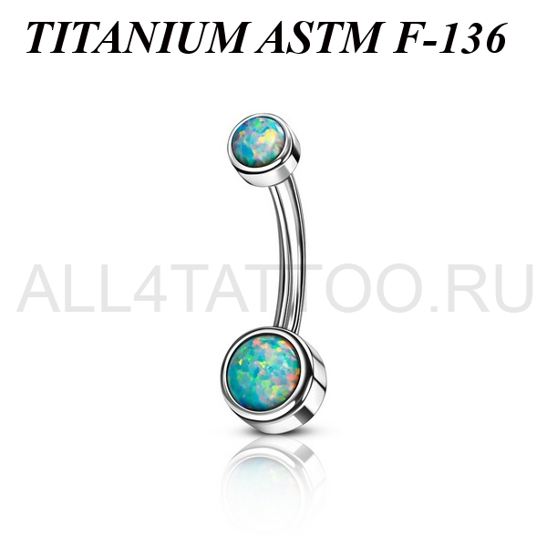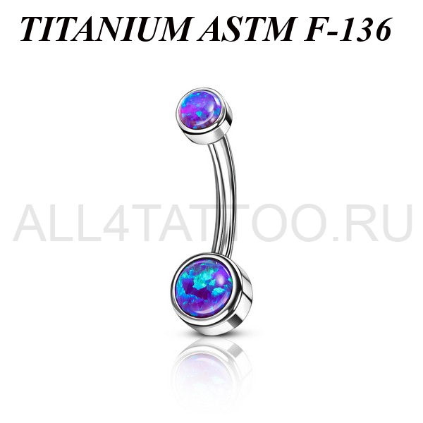 Банан из имплантационного титана 6Al-4V-Eli ASTM: F-136 с внутренней резьбой. Украшен ярким искусственным опалом.