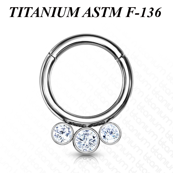 Кликер из имплантационного титана 6Al-4V-Eli ASTM. Украшен тремя фианитами.