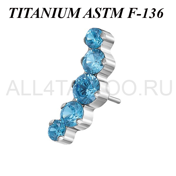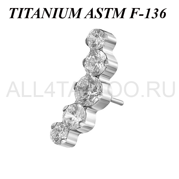 Вставка из имплантационного титана 6Al-4V-Eli ASTM: F-136 для безрезьбовых украшений. Украшена кластером с пятью фианитами. Размер декоративной части: 4,3х12мм.