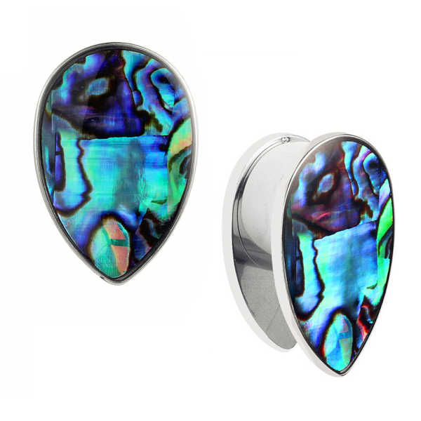 Плаги из хирургической стали 316L в форме капли с вставками из гелиотиса. Рисунок и оттенок каждого плага индивидуален, мы постараемся подобрать максимально похожие пары.