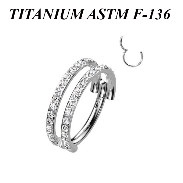 Кликер из имплантационного титана 6Al-4V-Eli ASTM: F-136 с двойным рядом миниатюрных прозрачных фианитов.
