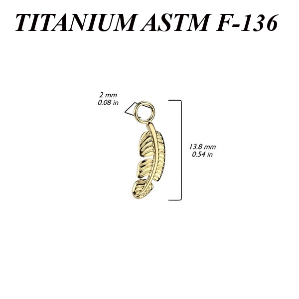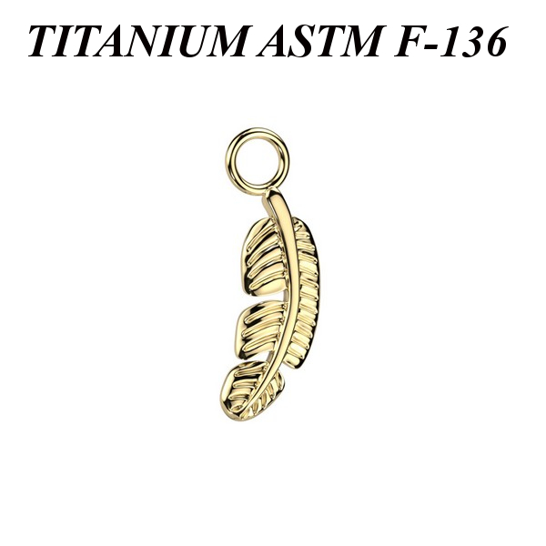 Подвеска из имплантационного титана 6Al-4V-Eli ASTM: F-136. Представлена в двух вариантах: классическая титановая и с золотым PVD покрытием. Размер пера: 4х11мм. Подходит для украшений толщиной не более 2мм.