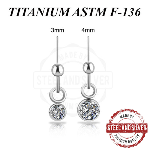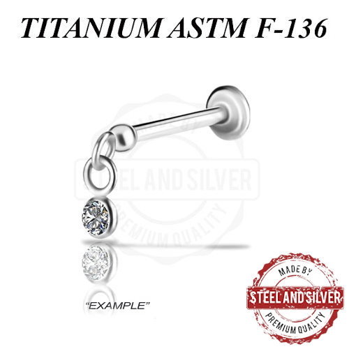 Вставка из имплантационного титана 6Al-4V-Eli ASTM: F-136 для безрезьбовых украшений. Украшена Premium Cubic Zirconia. Длина декоративной части с учётом шарика: 11мм