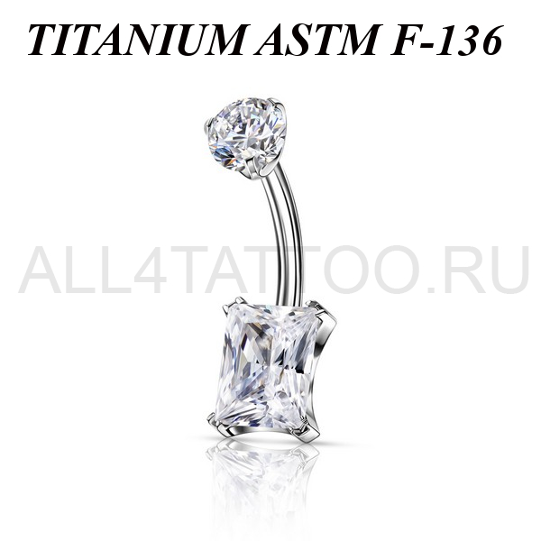 Банан из имплантационного титана 6Al-4V-Eli ASTM: F-136 с внутренней резьбой. Украшен прозрачными фианитами. Размер нижнего кристалла: 6х8мм.