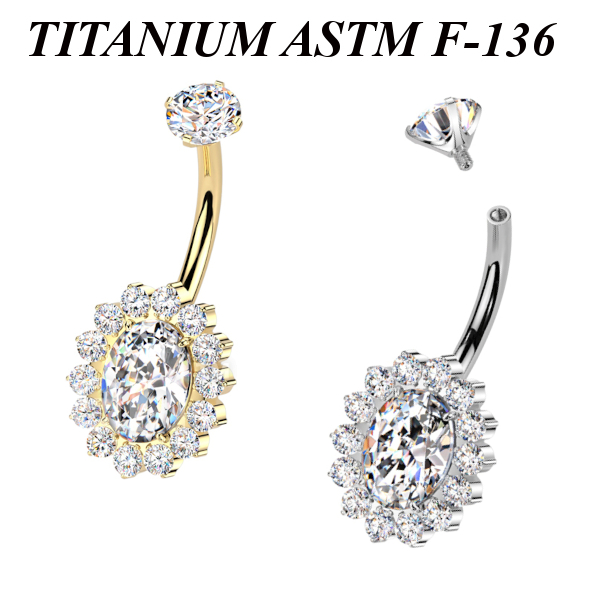 Банан из имплантационного титана 6Al-4V-Eli ASTM: F-136с внутренней резьбой. Украшен фианитами. Размер декоративной части: 11х13мм. Представлен в двух вариантах: классический титановый и с золотым PVD покрытием.
