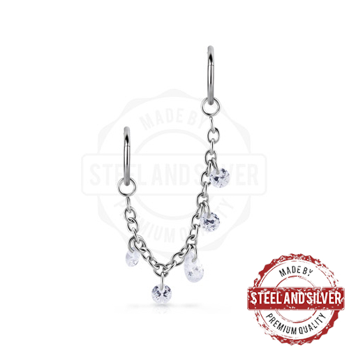 Цепочка из хирургической стали 316L. Украшена кристаллами Cubic Zirconia. Подходит для украшений толщиной не более 1,6мм.