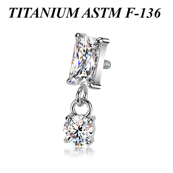 Накрутка из имплантационного титана 6Al-4V-Eli ASTM: F-136 с прозрачными фианитами. Размер накрутки: 2,5х9,7мм. Подходит для украшений с внутренней резьбой толщиной 1 и 1,2 мм.
